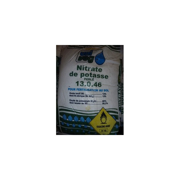 Le nitrate de potassium est une épandage d'engrais cristallin dans l'irrigation, 100% soluble. C'est la source idéale de potassium pour sa valeur nutritive élevée, son efficacité dans son application et son faible impact sur l'environnement. Il surpasse sa fonction par rapport à d'autres engrais de potassium dans tous les types de cultures.